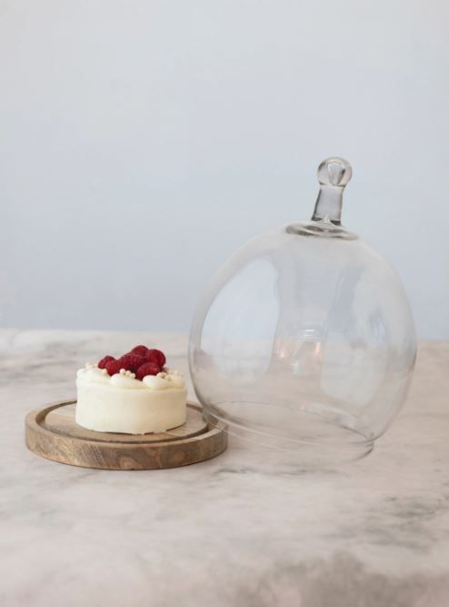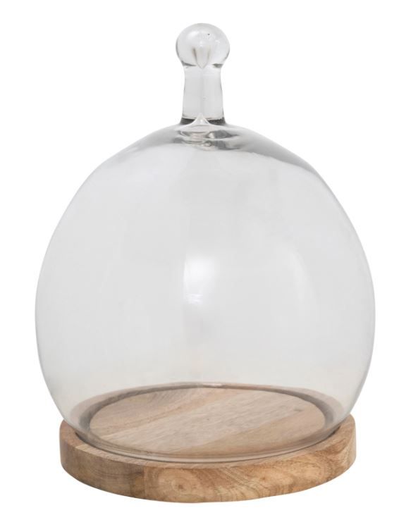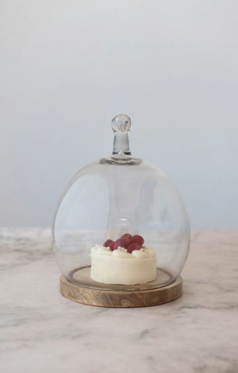 Glass Cloche with Handle and Mango Wood Base