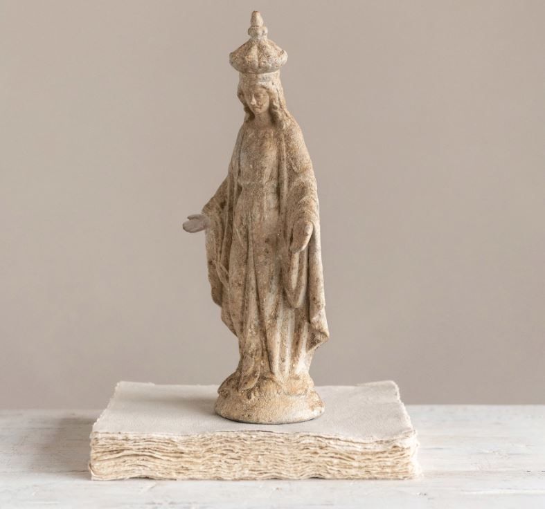 This Statue is Perfect for Any Religious Home to Put on Display at Any Time of the Year. Made Out of Resin, This Vintage Reproduction Virgin Mary Perfectly Accents Shelves and Table Tops. Featuring a Beautiful Distressed Finish, This Piece Beautifully Adds an Accent of Faith to Any Room.